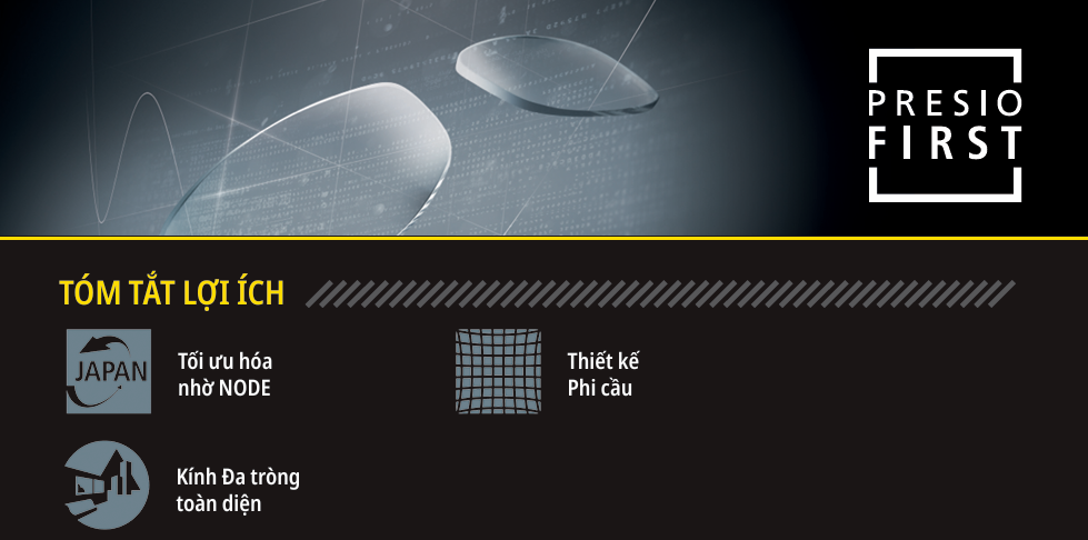 Ứng dụng công nghệ NODE tiên tiến của Nikon, Presio First giúp mở rộng vùng nhìn xa, trung gian và gần, đồng thời giảm mờ ở rìa kính đến 11%, mang lại trải nghiệm thị giác mượt mà và tự nhiên nhất.