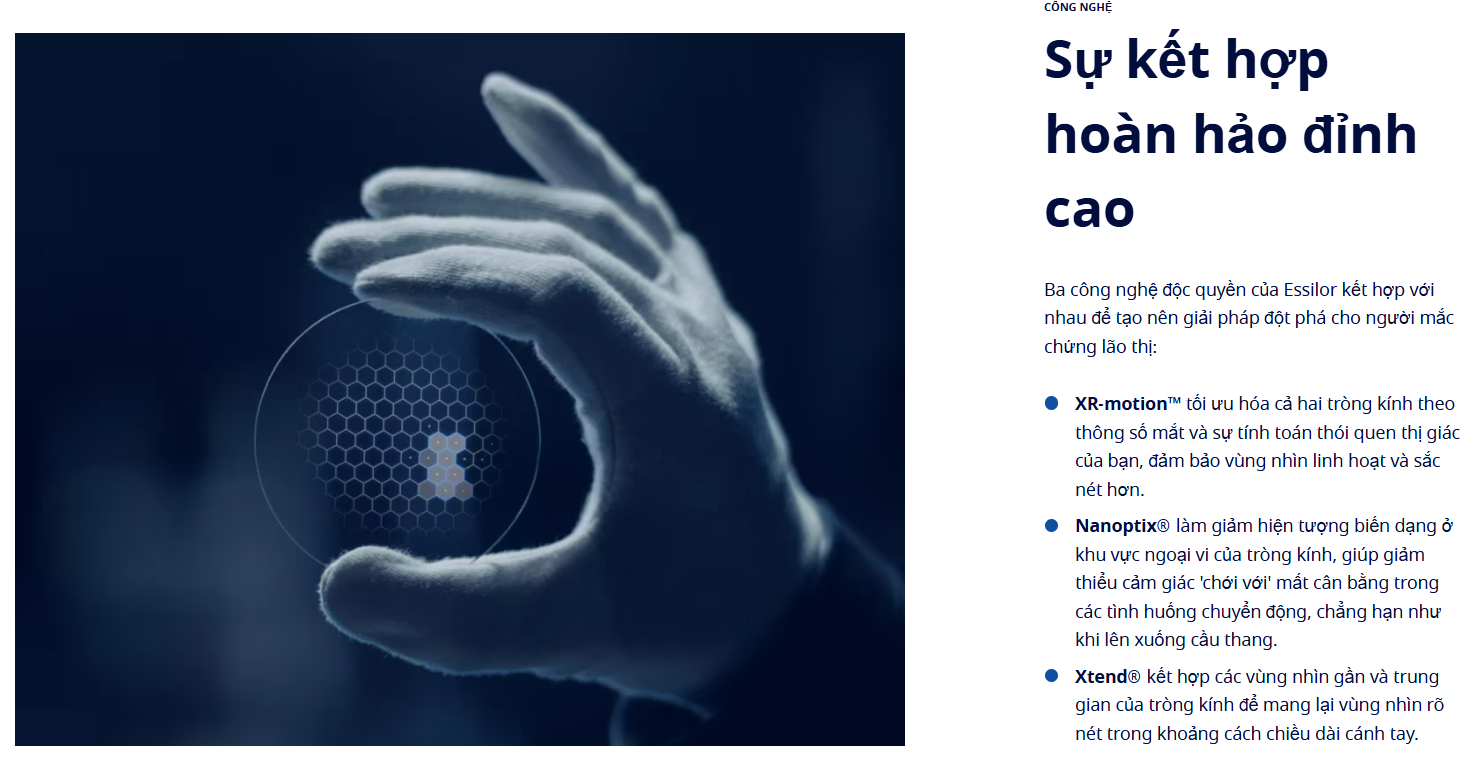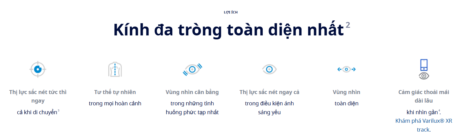 - Là đỉnh cao của dòng Varilux XR, kết hợp giữa công nghệ trí tuệ nhân tạo và thiết kế quang học tinh xảo.