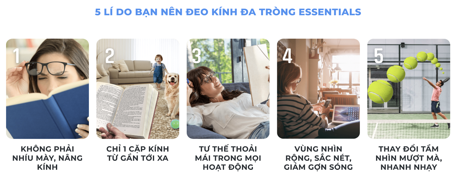 Đa tròng đánh Essential Active là tròng kính đa tròng của Essilor (Pháp) cho tầm nhìn gần, tầm trung và xa. Mắt Kính Khánh Hưng là nhà phân phối chính thức tròng kính đa tròng của Essilor Essential Active tại khu vực Đà Nẵng.
