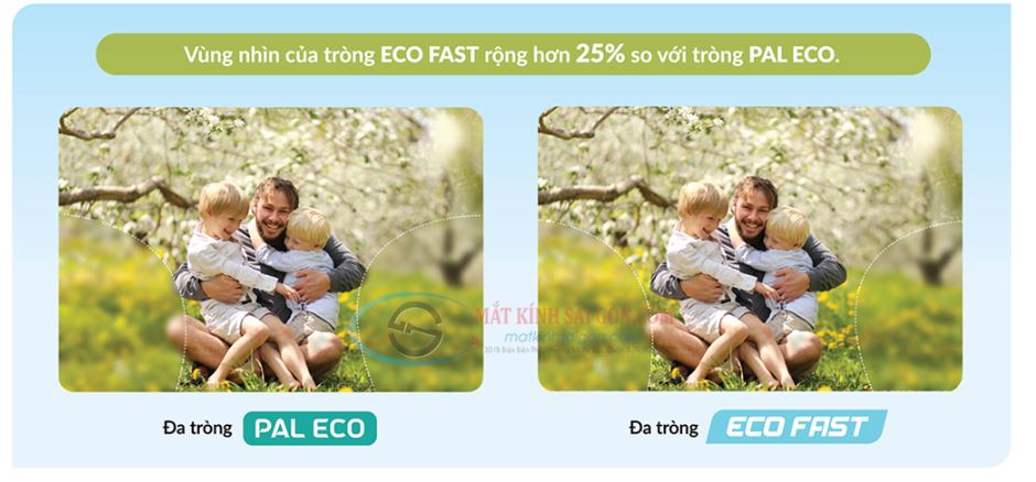 Kính đa tròng Eco Fast được cá nhân hóa theo thông số góc nhìn cụ thể, tạo điều kiện cho đôi mắt hướng đến các khu vực rõ ràng mà không cần động chạm hay điều chỉnh nhiều, nhất là đối với người đã quen sử dụng kính và cần một sự chuyển tiếp mượt mà giữa các phạm vi nhìn.