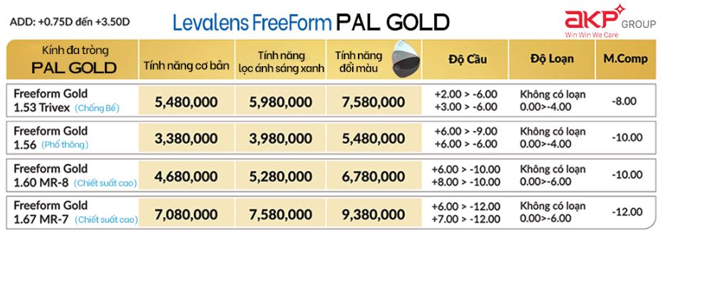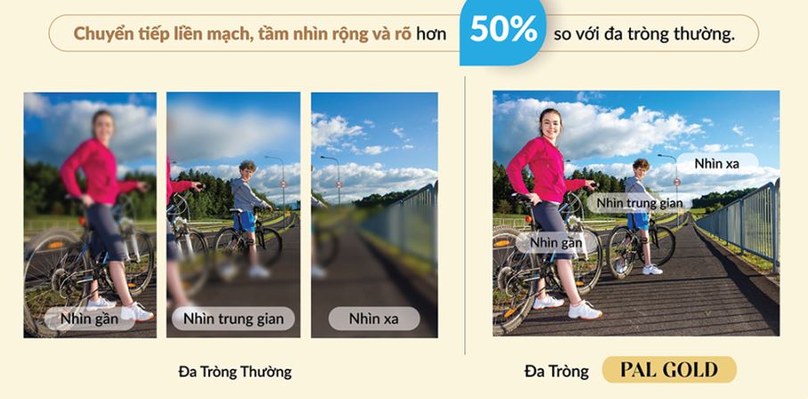 Khi bạn đến tuổi trung niên và nhận thấy rõ sự tiện lợi của kính đa tròng trong các hoạt động hàng ngày, bạn mong muốn được trải nghiệm một thị lực sắc nét và rõ ràng ở mọi khoảng cách, tự do lựa chọn nhiều kiểu dáng gọng kính khác nhau cho từng nhu cầu công việc, hãy chọn ĐA TRÒNG FREEFORM CÁ NHÂN HÓA PAL GOLD của chúng tôi để giúp bạn ngay lập tức thỏa mãn các nhu cầu thị giác này.