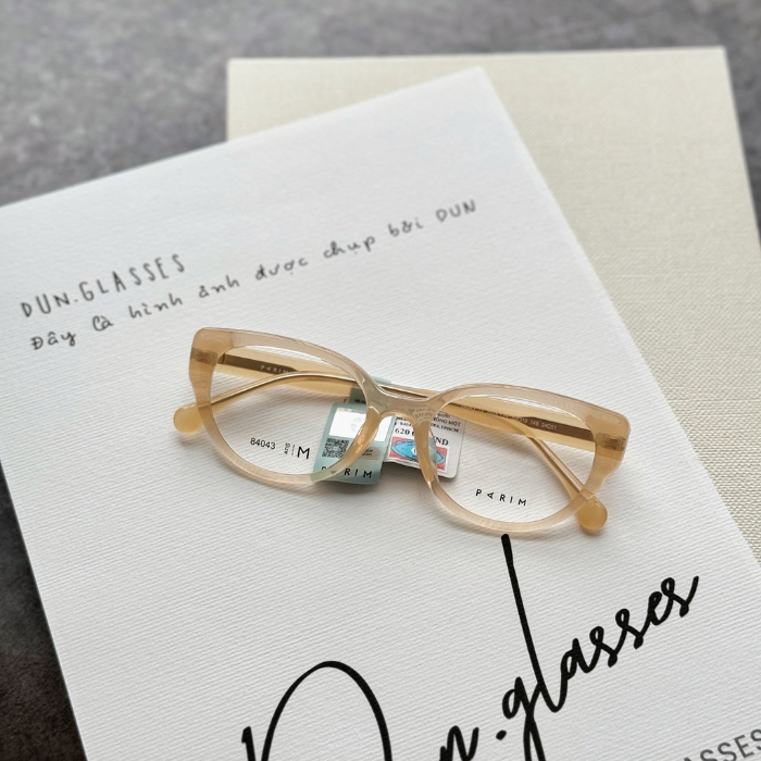 PARIM 84043 là mẫu gọng kính nhựa mang phong cách nữ tính – thanh lịch, nổi bật với dáng mắt mèo bo mềm cùng gam màu be trong phối nâu nhạt sang trọng. Thiết kế nhẹ nhàng nhưng vẫn tạo điểm nhấn giúp gương mặt trông thon gọn, trẻ trung và rất dễ phối trang phục hằng ngày.
