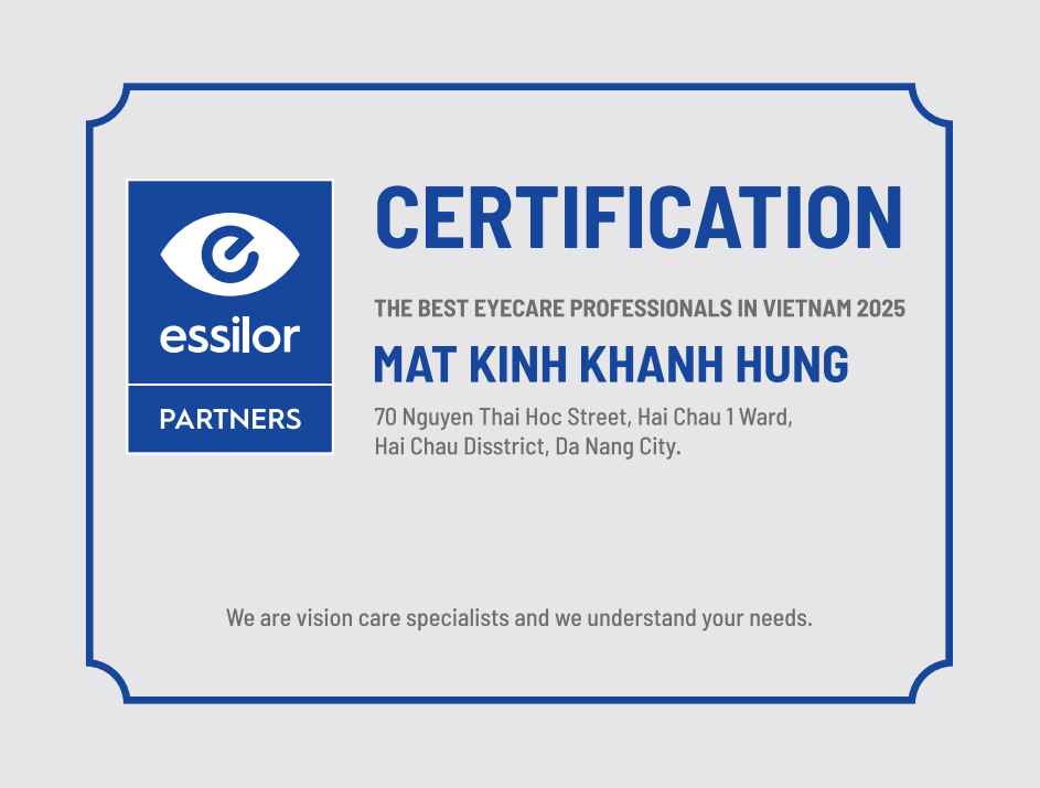 Đại lý chính hãng Essilor tại Việt Nam, được cấp chứng chỉ ủy quyền phân phối tròng kính Essilor.