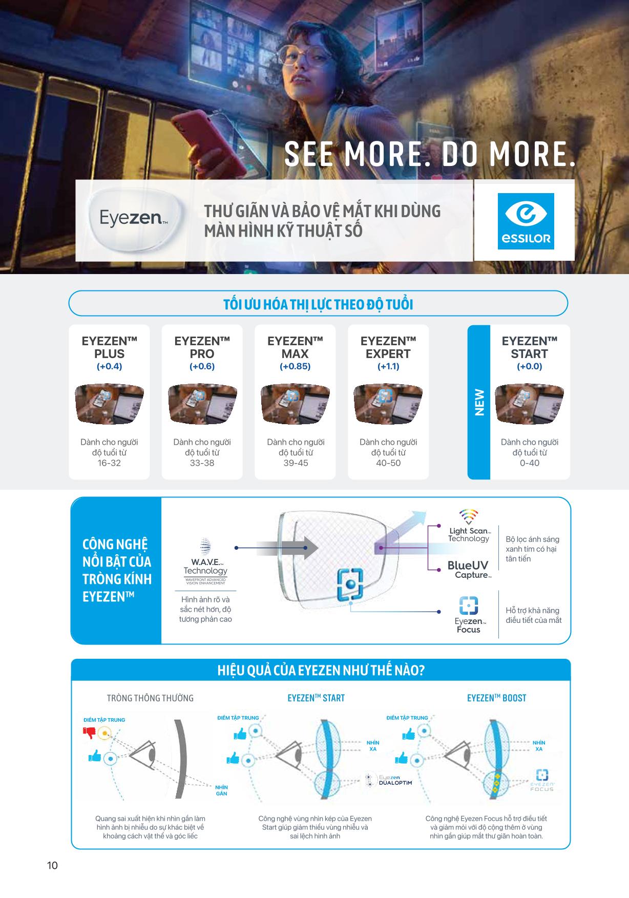 Thị lực rõ nét toàn diện: Công nghệ Eyezen DualOptim S™ giúp tối ưu ánh sáng theo cả điểm nhìn xa và gần, mang lại trải nghiệm thị giác thoải mái hơn.