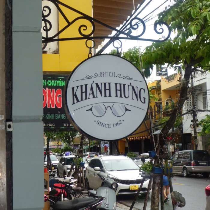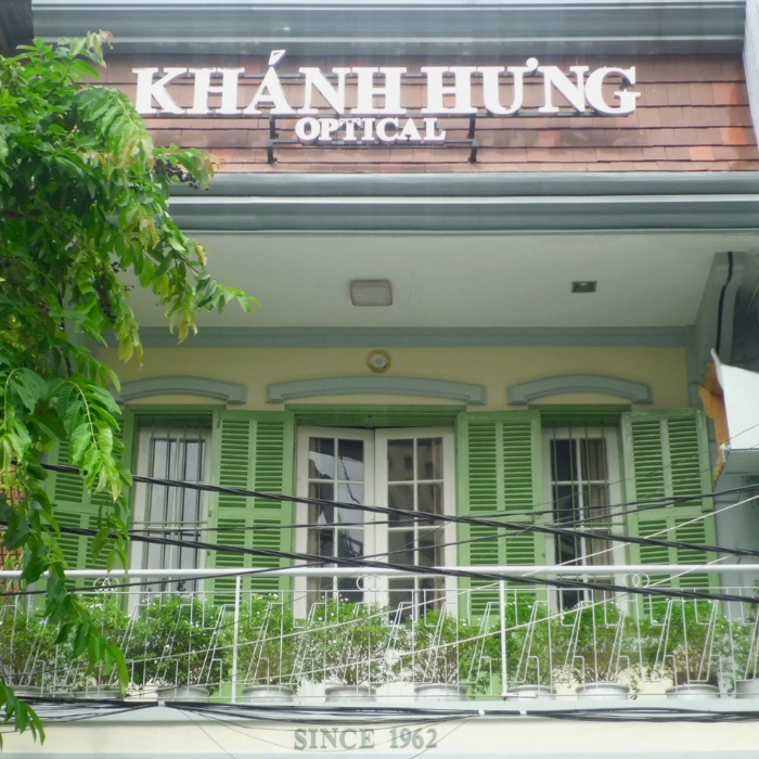 Có lẽ rất ít người biết rằng, Mắt Kính Khánh Hưng tính đến thời điểm này đã hơn 60 năm tuổi rồi. Có thăng có trầm, có rộn ràng nhưng cũng có những lúc chao đảo, cửa tiệm đã trải qua biết bao nhiêu biến cố phong ba bão táp của dòng lịch sử. Được thành lập vào ngày 16-4-1960 bởi cụ Trần Gia Khánh, Khánh Hưng khởi đầu khiêm tốn với một chiếc máy mài tay nhỏ đầu tiên tại Đà Nẵng ở khu vườn hoa Trần Hưng Đạo xưa, nay là số 70 Nguyễn Thái Học. Tấm ảnh trong bài được chụp vào thời điểm đó với vị trí cửa tiệm ở góc bìa trái.