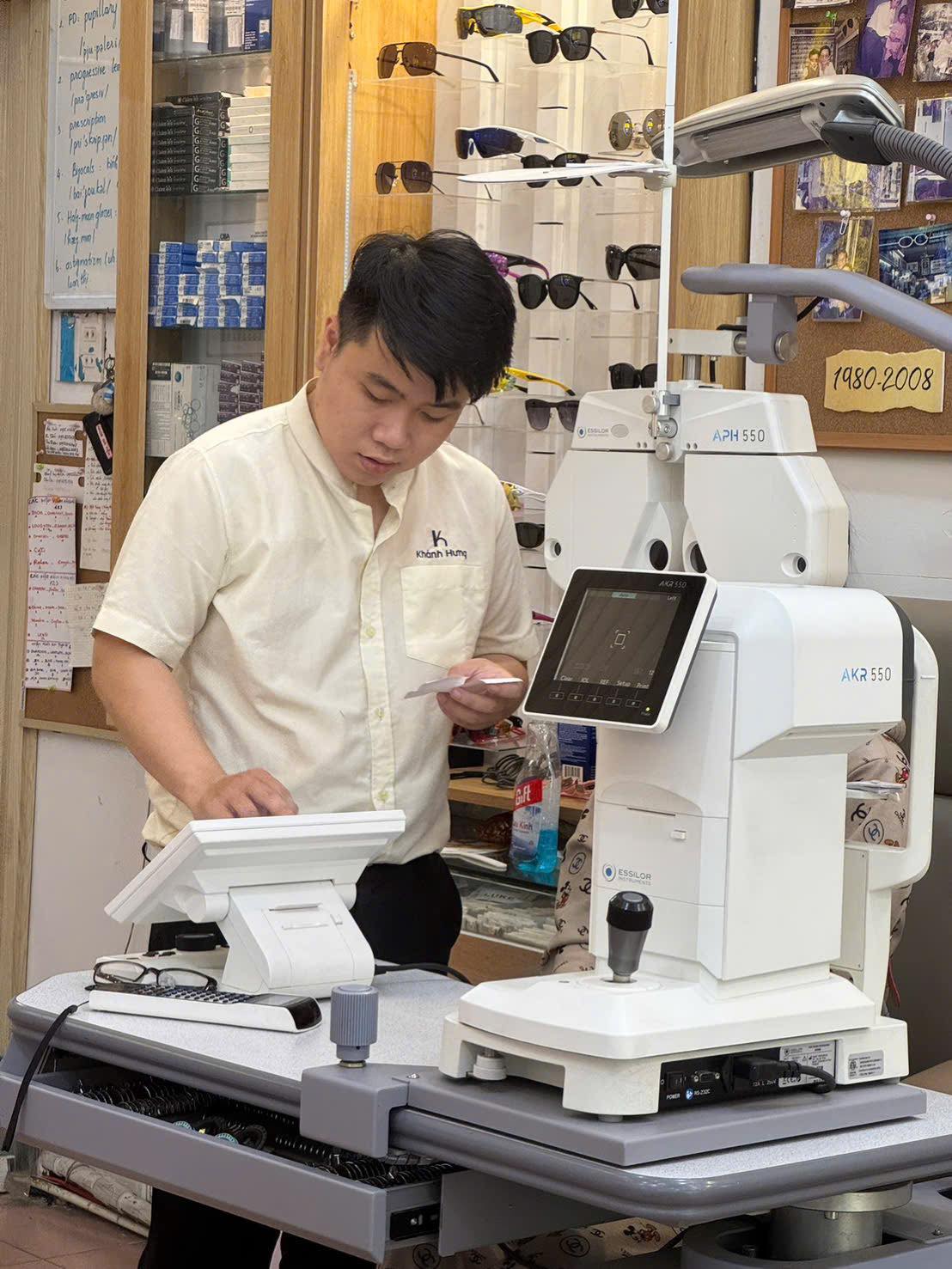 Tại Mắt Kính Khánh Hưng, mỗi buổi kiểm tra thị lực đều được thực hiện theo quy trình tiêu chuẩn quốc tế: